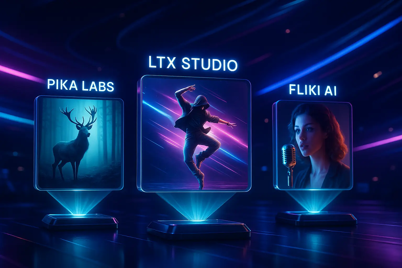 Three names dominate the market today — Pika Labs, LTX Studio, and Fliki AI.